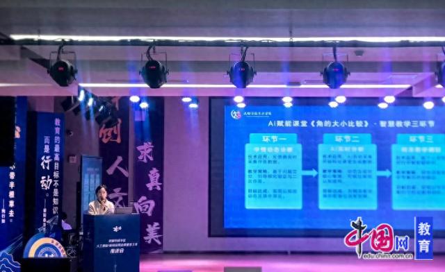 活动现场,该校通过直播形式实时呈现了黄娟老师执教的三年级数学《角的大小比较》AI融合课例,教师发展中心副主任姜梅蕾同步开展“课例伴随性解读”,二者深度协同,完整阐释了学校“AI+教学”的核心理念与实践逻辑。